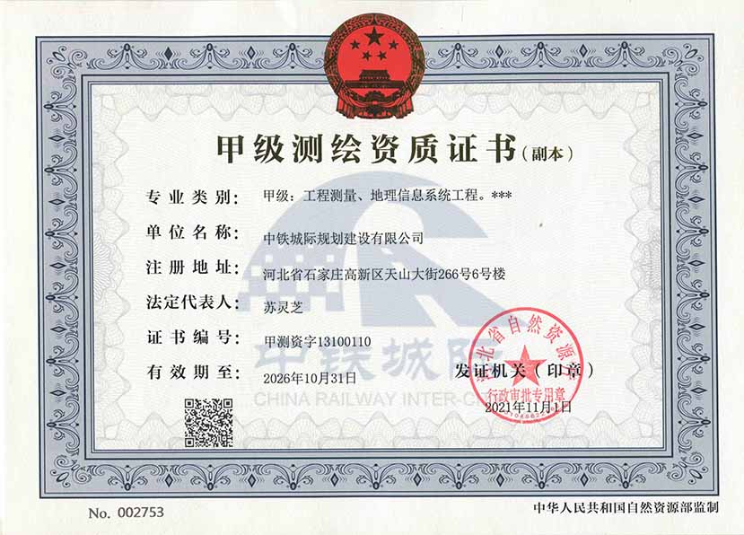 勘察甲級+地災(勘查、設計、施工、評估)甲級+地基基礎施工壹級+工程測量甲級+地理信息系統甲級+界線與不動產測繪乙級+攝影測量與遙感乙級+海洋測繪乙級