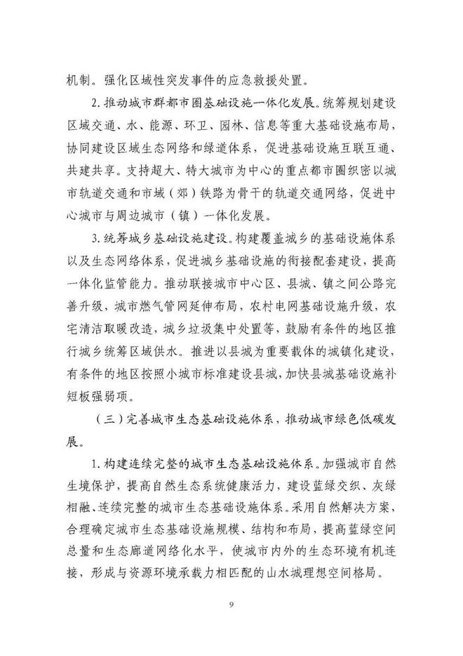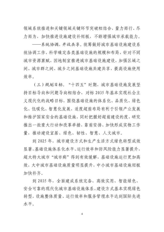 《規(guī)劃》圍繞構(gòu)建系統(tǒng)完備、高效實用、智能綠色、安全可靠的現(xiàn)代化基礎設施體系,提出4方面重點任務。一是推進城市基礎設施體系化建設,增強城市安全韌性能力。二是推動城市基礎設施共建共享,促進形成區(qū)域與城鄉(xiāng)協(xié)調(diào)發(fā)展新格局。三是完善城市生態(tài)基礎設施體系,推動城市綠色低碳發(fā)展。四是加快新型城市基礎設施建設,推進城市智慧化轉(zhuǎn)型發(fā)展。