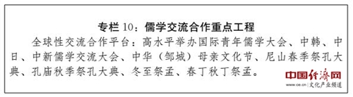 立足特色文化資源和功能定位,以特色園區(qū)和龍頭企業(yè)為支撐,加快培育壯大文化旅游、教育培訓(xùn)、健康養(yǎng)生、文化創(chuàng)意和節(jié)慶會展五大主導(dǎo)產(chǎn)業(yè)集群,打造具有較強(qiáng)國際影響力的儒家文化產(chǎn)業(yè)集聚區(qū)。