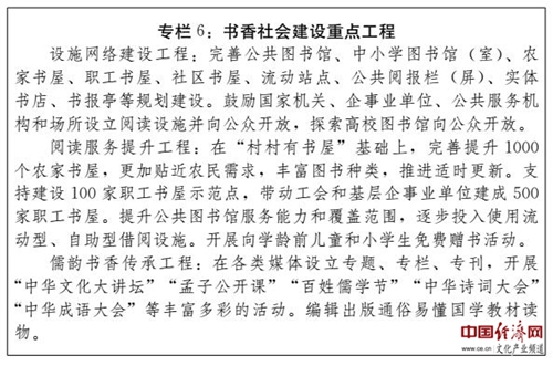 (二)實(shí)施書香社會建設(shè)行動計(jì)劃。遵循公益性、基本性、均等性、便利性原則,大力促進(jìn)全民閱讀,打造儒韻書香氛圍,顯著提高國民素質(zhì)和社會文明程度。開展經(jīng)常性全民閱讀活動,在孔子誕辰日、世界讀書日及重要節(jié)慶日舉辦讀書講座、集體閱讀、演講比賽等活動,培育和鞏固各類書香品牌,使讀圣賢之書深入生活、成為常態(tài)。支持依法成立讀書會、品讀論壇、社區(qū)書社等各類組織,發(fā)揮文化名人、領(lǐng)導(dǎo)干部、教師等示范帶動作用,定期推薦面向不同讀者群體的優(yōu)秀出版物,引導(dǎo)群眾多讀書、品經(jīng)典、賞名著。完善覆蓋城鄉(xiāng)、實(shí)用便利、服務(wù)高效的全民閱讀設(shè)施網(wǎng)絡(luò),充分考慮特殊群體需求,保證閱讀資源定期流轉(zhuǎn)、補(bǔ)充和更新。加快“儒韻書香”數(shù)字化閱讀平臺建設(shè),提供正版數(shù)字圖書免費(fèi)在線閱讀,促進(jìn)閱讀新技術(shù)、新載體、新設(shè)施的開發(fā)應(yīng)用。加強(qiáng)中小學(xué)書香校園文化建設(shè),持續(xù)開展“經(jīng)典誦讀”活動,從娃娃抓起培養(yǎng)閱讀興趣,用好習(xí)慣為書香社會奠定基石。到2020年,力爭年人均紙質(zhì)圖書和電子書合計(jì)閱讀量達(dá)到15本,顯著高于全國平均水平。