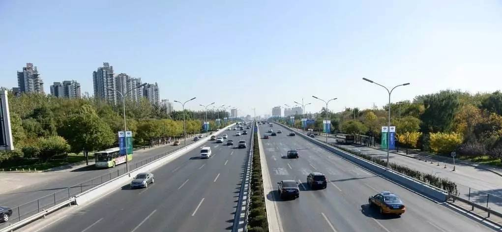 以三條分隔帶使對向車流分行、機動車與非機動車車種分流的橫斷面形式。