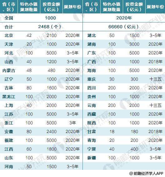 2018 年全國 31 省市特色小鎮最新政策及建設規劃匯總