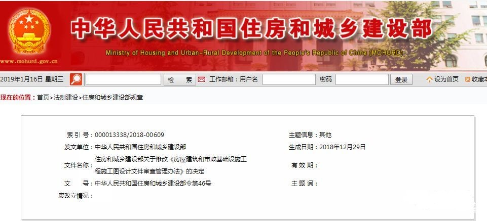 1月16日,住建部正式發文修改《房屋建筑和市政基礎設施工程施工圖設計文件審查管理辦法》的決定:將消防、人防等設計并入施工圖設計文件審查