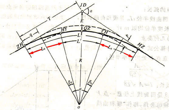 一般由直線、緩和曲線、圓曲線構成。什么叫緩和曲線呢?是一個曲率連續變化的曲線,此例中是連接直線與圓曲線之間的過渡曲線。這樣就能逐漸入彎和出彎道啦?!綥s段就是緩和曲線段】