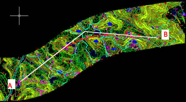 平面縱面都確定了,那么道路中線的空間位置就確定了。那么把左右50m左右的高程都讀出來。那么一條路就基本呈現出來。