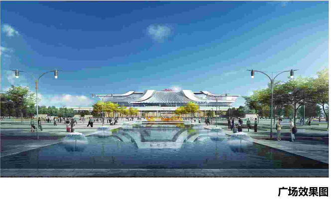 4、人行集散空間及地下服務設施,包括西廣場區(qū)域景觀,地下停車場、換乘大廳、商業(yè)空間及配套附屬用房等。