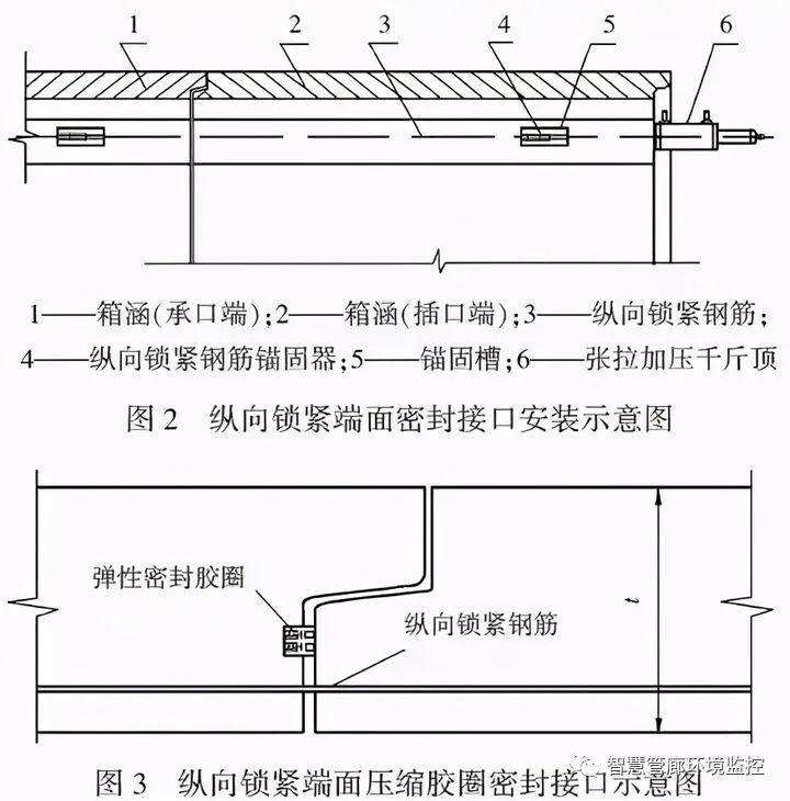 端面接口密封材料常用彈性膠條,其寬度為20×30mm、高為20mm、25mm。膠條的性能與用于混凝土管膠圈相似,為彌補(bǔ)箱涵構(gòu)件端面混凝土存在的氣泡或小凹坑,彈性膠條的對(duì)接表面可膠接5mm厚的遇水膨脹膠料,使其水脹性能填充氣泡和凹坑,防止接口滲水。