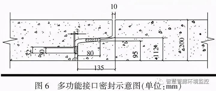 ②地下綜合管廊的設(shè)計(jì)使用年限為100 年,密封膠圈的耐老化性能成為關(guān)鍵,使用數(shù)十年后,橡膠的應(yīng)力松弛、物理性能變化、彈性對(duì)混凝土面的擠壓應(yīng)力是否還能滿足接口抗?jié)B要求等成為疑問,而多功能接口不但具有現(xiàn)時(shí)接口質(zhì)量可檢性,而且還具備接口質(zhì)量的可補(bǔ)性。當(dāng)接口中使用的膠圈性能不能滿足接口抗?jié)B要求時(shí),可擰開上下接口檢驗(yàn)進(jìn)水通道的螺帽,吹凈其中水分和雜物,接上灌漿設(shè)施,向兩個(gè)膠圈之間的空腔內(nèi)灌注防水密封膠液,形成二次柔性密封接口。