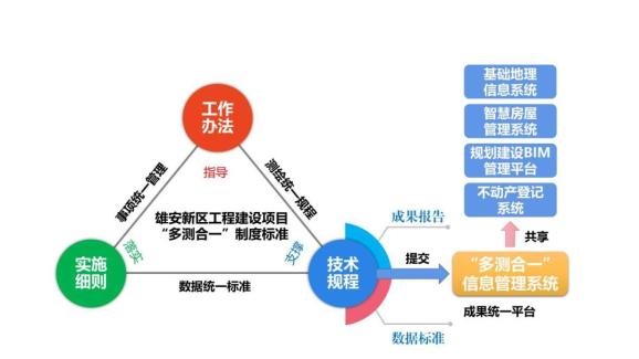 雄安新區工程建設項目“多測合一”是落實雄安新區黨工委、管委會加快推進工程建設項目審批制度改革工作的具體實踐,也是同步構建數字城市的重要基礎保障。2021年4月,雄安新區管委會率先在省內印發出臺了“多測合一”工作辦法、實施細則和技術規程,同步啟動了“多測合一”信息管理系統建設,主動適應新區進入大規模開發建設與承接北京非首都功能疏解同步推進的發展要求,打造了“多測合一”改革的“雄安模式”。