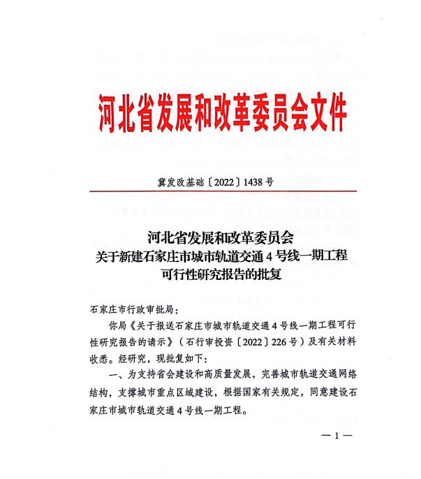 近日,石家莊市軌道交通4號(hào)線一期工程可行性研究報(bào)告獲河北省發(fā)改委批復(fù)。4號(hào)線一期工程可研的批復(fù)標(biāo)志著石家莊軌道交通二期規(guī)劃建設(shè)取得了突破性進(jìn)展。