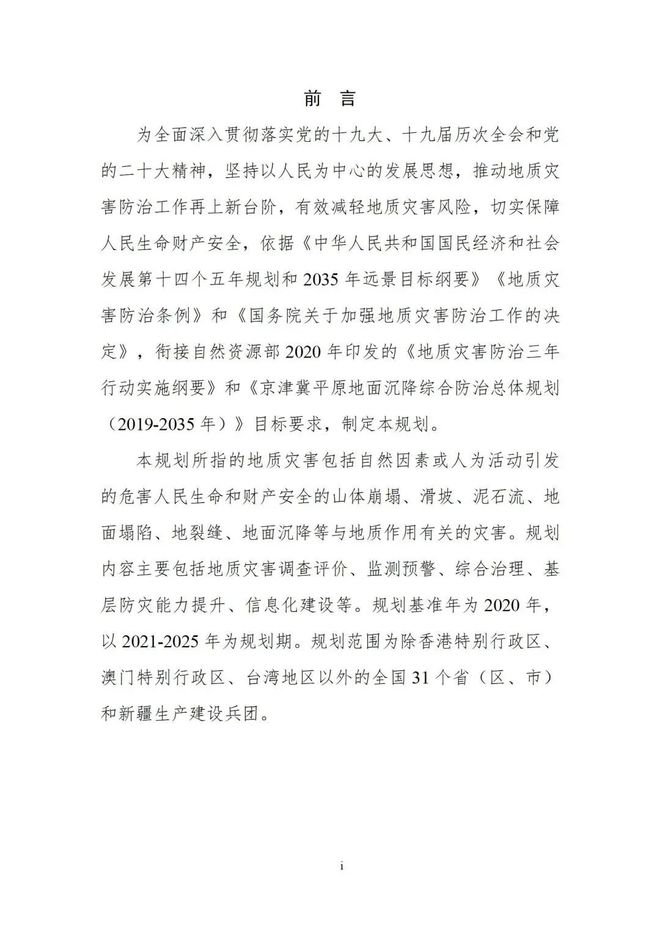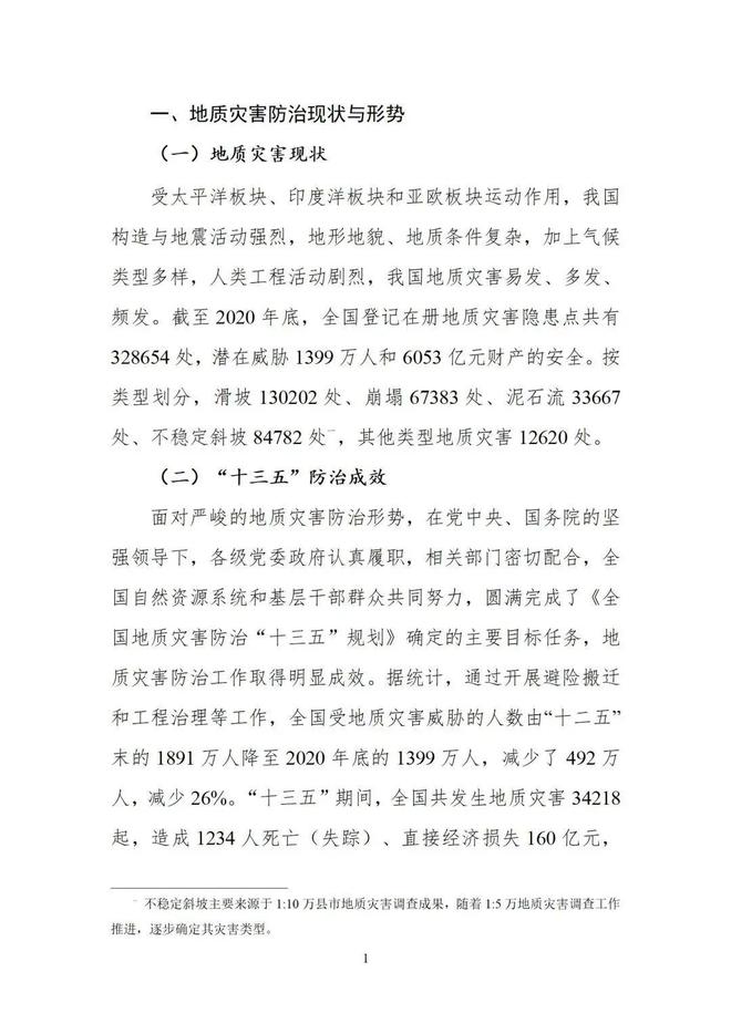 全國(guó)地質(zhì)災(zāi)害防治“十四五”規(guī)劃