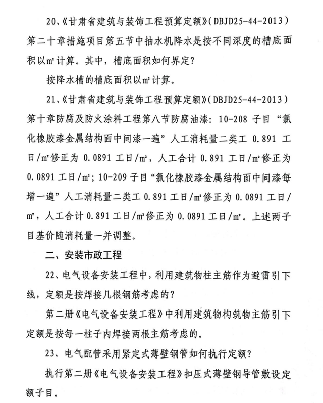 近日,甘肅住建就工程定額印發了一份詳細的解釋通告。