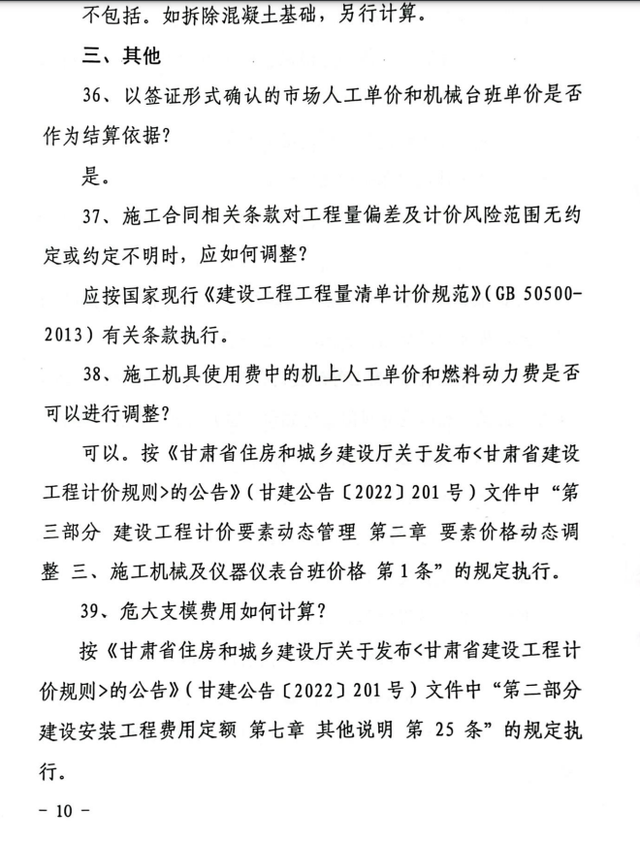 工程造價定額變動!甘肅住建廳出臺《2022年度有關定額解釋》