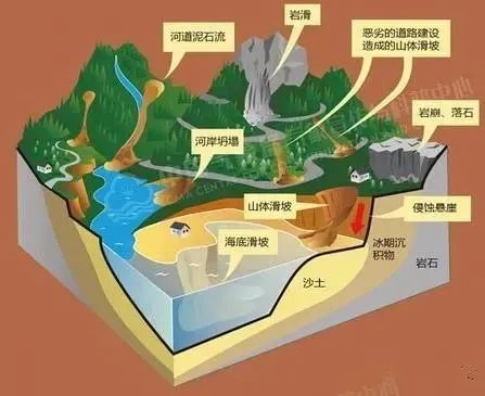 地質災害是指由自然因素或人為活動引發的危害人民生命和財產安全的山體崩塌、滑坡、泥石流、地面塌陷、地面沉降、地裂縫等與地質作用有關的災害。
