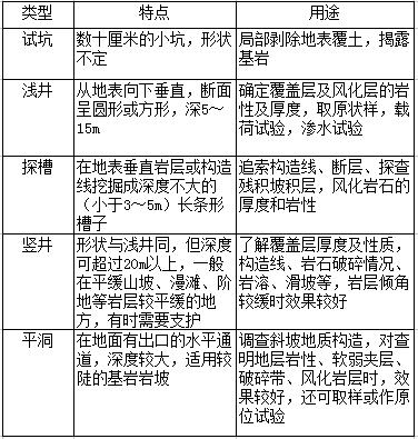 工程地質(zhì)勘探中坑、槽、洞的類型 表1-1