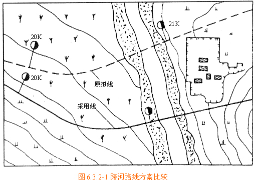 時)或河溝過于彎曲的情況,可采取改河措施或改移路線,調整橋軸線與流向的夾角,以免過分增加施工困難和加大工程投資,選線時應全面比較確定。
