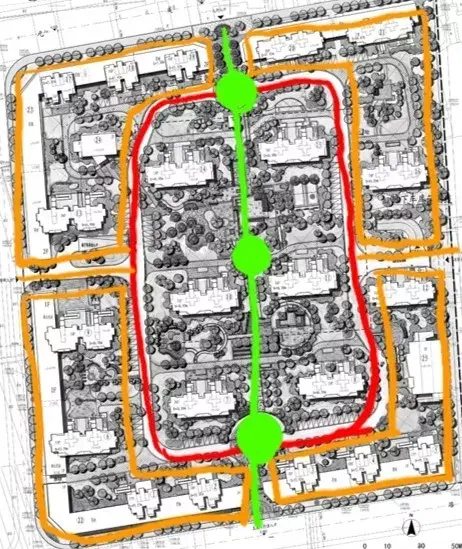 沿住宅基地外圍布置,形成良好的私密空間,給居民心里的安全感,但東西向建筑可能存在日照和綠化問(wèn)題。