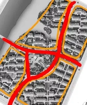 一個(gè)核心多個(gè)組團(tuán),組團(tuán)明確。