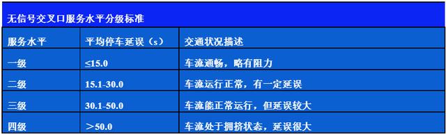 建設(shè)工程影響范圍內(nèi)道路路段、交叉口是否產(chǎn)生新的交通瓶頸點(diǎn),是否造成路段局部或交叉口某個(gè)流向交通狀況惡化,是否能夠維持道路路段或交叉口服務(wù)水平處于合理范圍。以服務(wù)水平分級(jí)作為主要評(píng)價(jià)內(nèi)容,以延誤或飽和度為基本評(píng)價(jià)指標(biāo),也可采用排隊(duì)長(zhǎng)度等指標(biāo)。