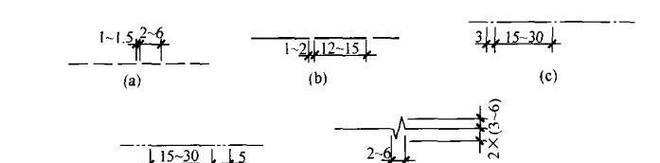 ②當(dāng)實(shí)線的延長線為虛線時(shí),應(yīng)留空隙,見圖2-4(b).