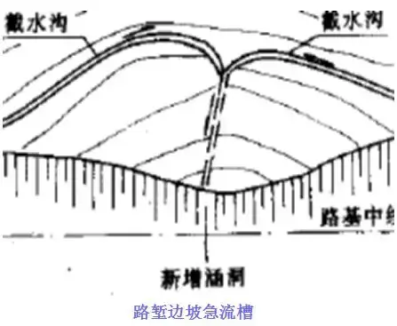 急流槽設(shè)置通常設(shè)置在高路堤邊坡、高路塹邊坡、路塹與高路堤連接處、回頭曲線上下邊溝等位置,是山區(qū)公路溝通上下線路路基排水及溝渠出水口的一種常見(jiàn)排水設(shè)施。