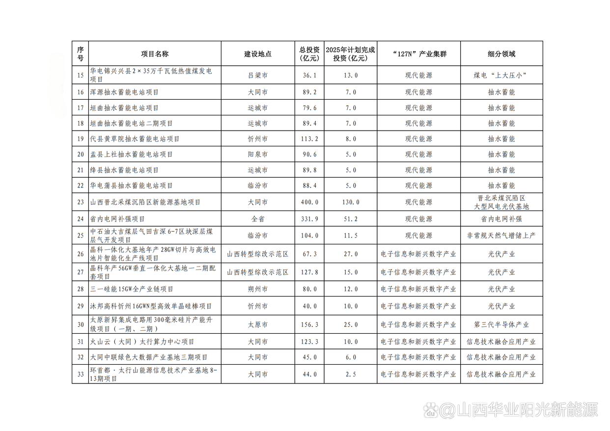 2.山西晉北新能源基地項目(含湖東“上大壓小”、同熱三期、風電光伏3個子項目),總投資553億元,年度計劃投資169.8億元,建設地點大同市。