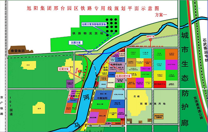 規劃范圍:中煤旭陽焦化鐵路專用線~邢臺園區站,規劃范圍包含綜合貨場、旭陽煤化工場、金牛旭陽和卡博特旭陽為主的化工園區場,即龐馬村以東至京港澳高速、太平村以南至邢臺北外環園區規劃區域。
